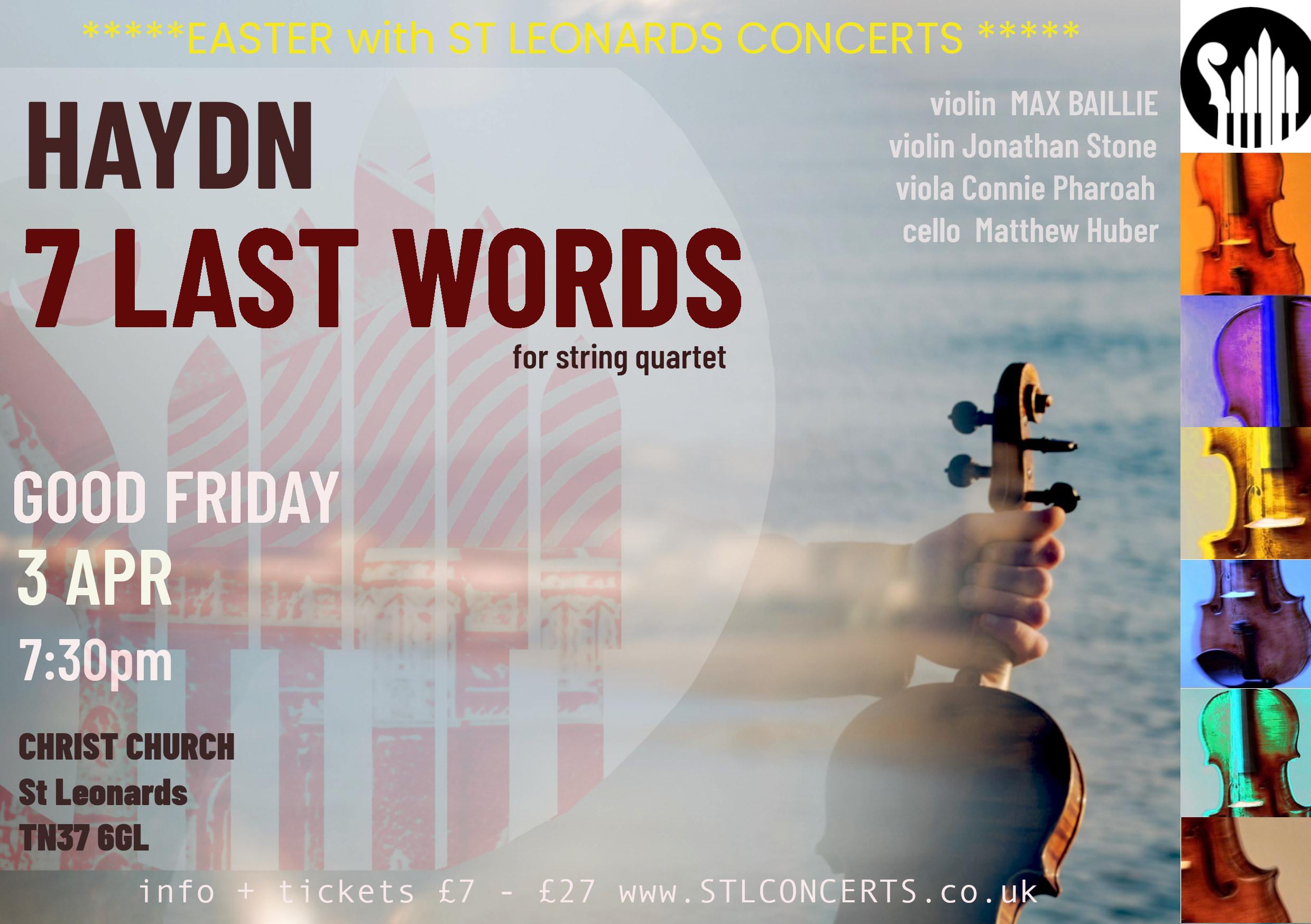 We celebrate Easter at Christ Church on Good Friday 3rd April with one of the great pieces written for the Easter calendar — Haydn’s 7 Last Words for string quartet. Deeply spiritual and exquisitely beautiful, this piece is cosmic in scope. Featuring: Max Baillie violin Jonathan Stone violin Connie Pharoah – viola Matthew Huber – cello This concert runs for 70 minutes without interval